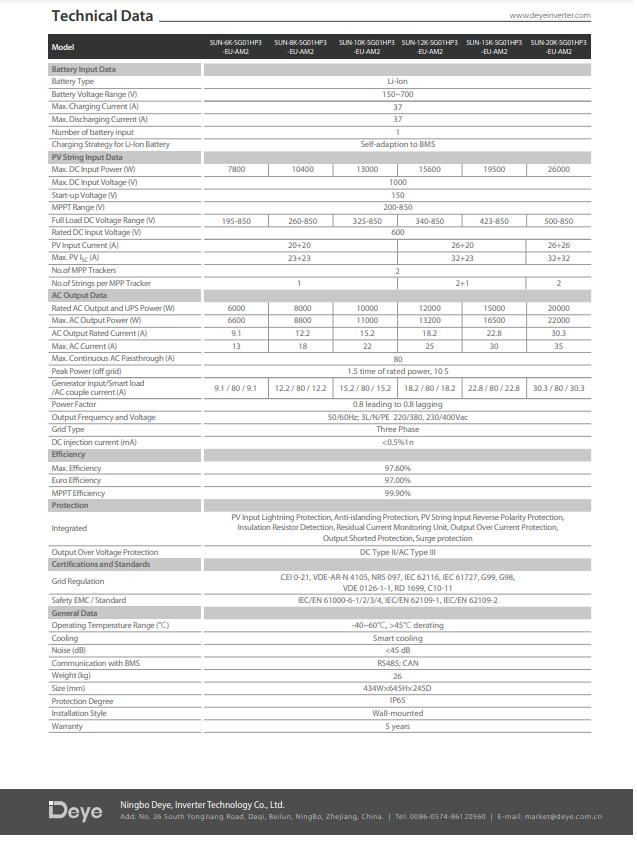 Thông số kỹ thuật của Inverter hybrid Deye 15KW 3 pha (SUN-15K-SG01HP3-EU-AM2)